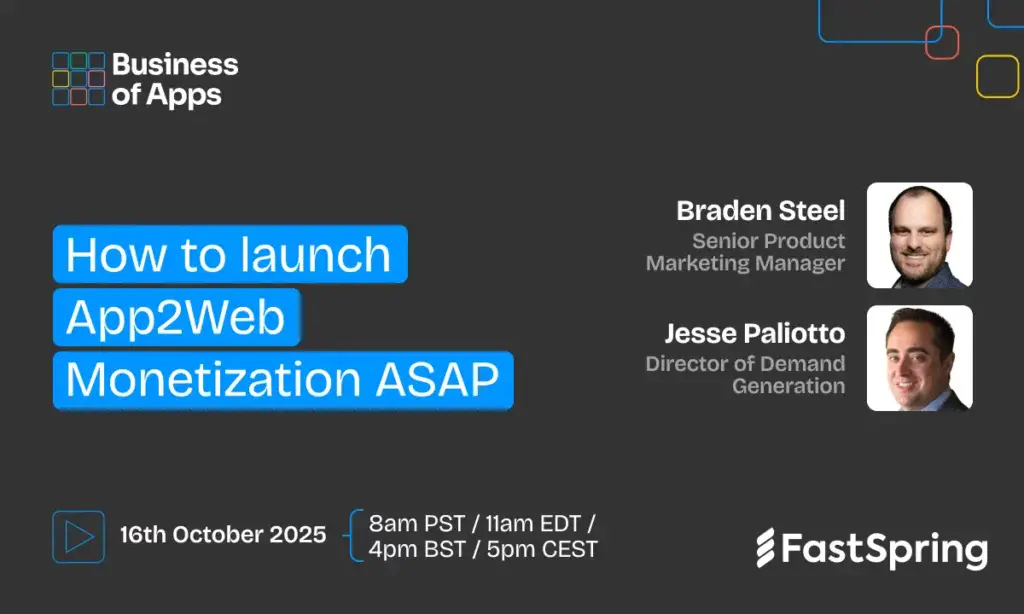 In our recent webinar with Business of Apps, FastSpring experts break down the current rules, the business opportunity behind app2web (“steering”), and what it takes to launch a successful strategy quickly.